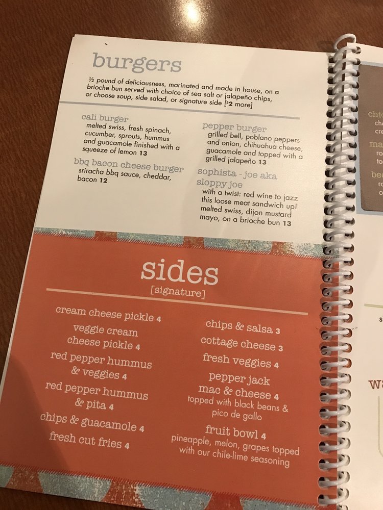 Chunky chicken prepared with diced red onions, celery, apples, grapes and tossed with our sweet dressing blend, on top of romaine and cucumber, finished with sugared pecans and sprouts. served on wheatberry bread. Choose a side: Sea Salt Chips, Jalapeno Chips, Signature Soup : $.